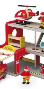 This super value toy of fire station comes with 2 story fire house with openable garage door. Includes 2 firemen, 1 fire hydrant, 1 bunk bed, 1 ladder, 1 control desk, 1 chair, 1 helicopter, and 1 fire truck. Provides hours of role play fun for children. Natural, safe, educational and beautiful, that are the features of Viga toys. All products have an attractive design.