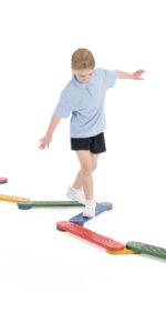 A colourful set of balance boards with connectors which can be arranged in various shapes. Each board has an engraved design to give a different sensation underfoot.