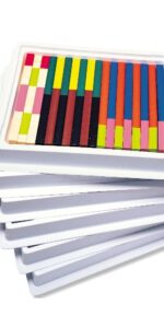 Economical Multi-Pack of wooden rods contains six sets of 74 rods, six trays with lid and Teacher’s Guide. Use with 12-18 students.