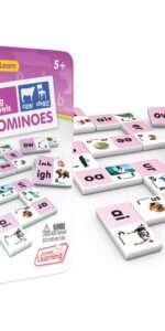 Dominoes come in a collectors tin for storage. Children will love the feel of real dominoes as they complete the long vowel matching game.