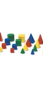 Teach shapes, sizes and relationships with these handy colourful, plastic geometric pieces in different colours and sizes. Includes 4 sizes of 8 shapes: triangular prism, cube, cone, cylinder, rectangular prism, hexagonal prism, triangular pyramid and square pyramid. Each shape measures from 1.5cm to 4.5cm.