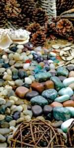 Material: Botanicals, wood, shells, minerals and gems all products are sustainably farmed.