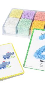 Learning Resources Playfoam Shape & Learn Numbers Set. Playfoam is a completely mess free creative play resource that is great for sensory play! This Learning Resources award winning product helps develop fine motor skills for little hands. The non-toxic formula makes this best selling Playfoam great for safe creative play. It doesn’t stick to hands, clothes or carpet, just to itself! What’s even better is Playfoam never dries out, so children can display their masterpieces rather than having to put it all back in the box! This set combines all the fun of Playfoam with basic number and shape formation as children simply mould Playfoam into what’s on the activity cards before squashing it down and starting again. Number cards feature instructional steps to help children form them correctly. Includes eight colourful Playfoam bricks and 13 double-sided activity cards. Includes useful plastic storage tray. Cards measure 12.5cm x 17.5cm. Bricks measure 5cm H x 6cm W. Suitable for ages 3+