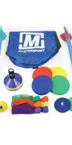 Contents include 4 PlaySport? Javelins, 4 PlaySport? Shot, 4 PlaySport? Discus, 4 Puskin Flying Discs, 6 Bean Bag Scarves, a Set of 25 Space Markers and a Storage Sack
