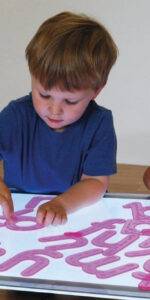 Transparent pink silicone letters which are strong, soft and pliable and can be used in everyday play – in the sand pit, on the floor, on a light panel and in water. In a school friendly font they are useful