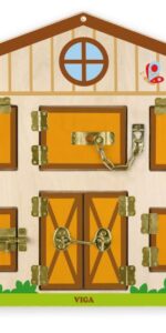 Educational Fun: With six hinged doors, the Viga Wall Toy – Locking and Unlocking Wooden Barnyard Scene teaches kids about the important life skill of locking and unlocking while keeping them entertained for hours.