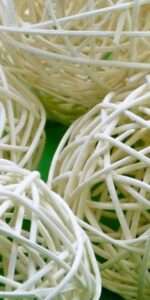 Material: Hand woven white wicker dried naturally to form spheres.
