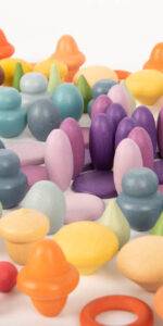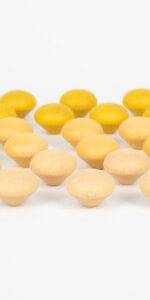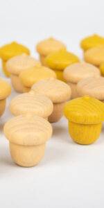 Beautiful smooth wooden acorns in three shades of yellow, which represents wisdom, learning and happiness. Wooden Treasures are a versatile open-ended resource designed to stimulate the imagination