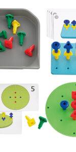 Children enjoy playing pegs by pushing in, pulling out and stacking. Rectangular pegboard and round pegboard will encourage children to create different patterns.