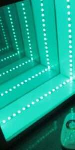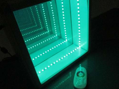 The panel is a screen in which the LEDs are located on the perimeter. Through a system of mirrors it creates the effect of an infinite tunnel of lights.