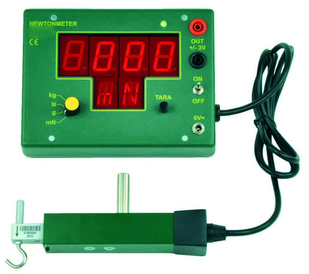 Demonstration instrument with magnetic holder for measuring force (in newtons) or mass (in grams).