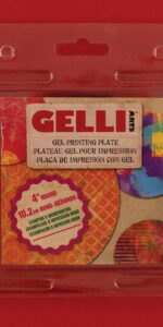 Gelli Plate 4 Inch Round. For mono printing without a press. A great way to create texture and surface pattern. Produce your own designs by making marks and pressing textured objects into the wet paint on the plate. Print onto multiple surface types for different effects. Easy to clean, and reusable.
