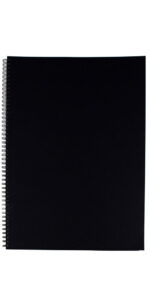 Portrait Classic Spiral Sketchbook. Black embossed card front cover with 2mm greyboard back cover. 7/16″ silver wire-o binding.
